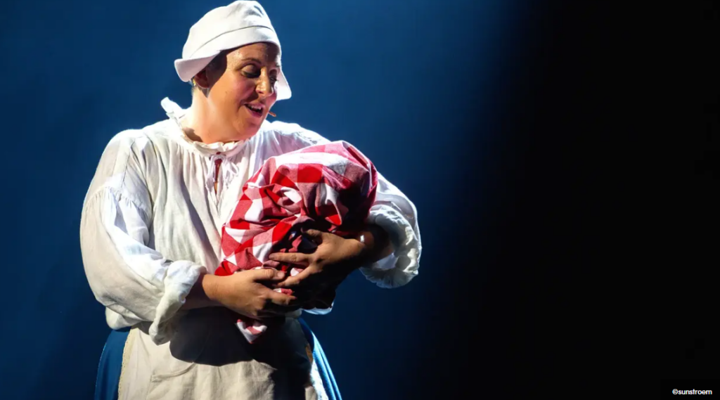 Die Inszenierung nutzt geschickt die Möglichkeiten des Formats: Als One-Woman-Show kann sie intimer, direkter, persönlicher sein als jedes Ensemble-Musical. Die Amme erzählt ihre Version der Geschichte, kommentiert, zweifelt, klagt an – und das Publikum ist nicht nur Zeuge, sondern wird zum Vertrauten, zum Komplizen.