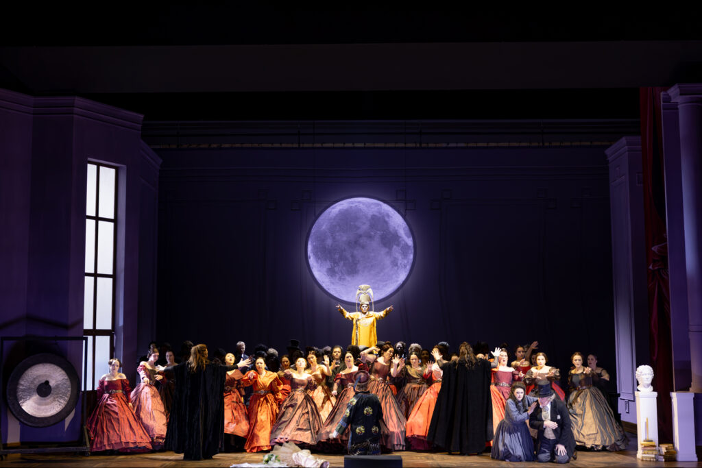 Turandot ist eine Frau des 19. Jahrhunderts, die am Tag ihrer Hochzeit einen inneren Zusammenbruch erleidet und durch die Ikonen weiblicher Macht reist – Medusa, Judith, Eva, Elisabeth I. Was auf dem Papier schlüssig klingt, funktioniert auf der Bühne nur bedingt: Puccinis Musik atmet China, Exotismus, orientalischen Farbenrausch. Zwischen Klang und Bild klafft ein nicht ganz zu überbrückender ästhetischer Riss.
