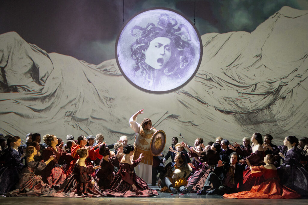 Sokolova liest Turandot als weibliche Subjektwerdung: als inneres Kammerspiel einer Frau, die am Vorabend der Selbstaufgabe durch die Geschichte der Unterdrückung und der weiblichen Macht reist. Medusa, Judith, Eva, Elisabeth I. – das sind keine beliebigen Archetypen, sondern präzise gewählte Stationen eines feministischen Arguments. Das Konzept hat Substanz und historische Legitimation: Puccini selbst hat den Kuss, den entscheidenden Wendepunkt der Handlung, nie vertont, weil er womöglich nicht glaubte, dass dieser Kuss alles lösen kann.