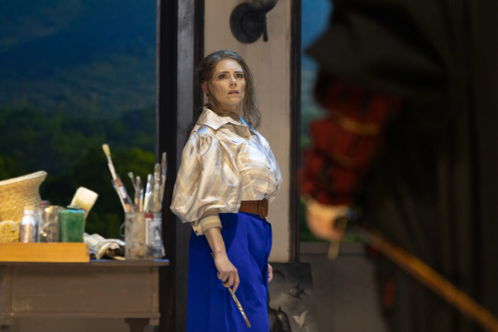 Im Zentrum steht Emily Newton als Senta. Sie ist kein graues Mäuschen, sondern eine emanzipierte Frau, die sich selbst befreit. Als Malerin mit Visionen, geplagt von Visionen, erschafft sie ihren Holländer in Form von Bildern und Pinselstrichen, zerstört ihn dann aber letztendlich, sobald sie begreift, dass Erlösung auch Loslassen heißt. Sentas Visionen erinnern an die surrealistischen Künstlerinnen Frida Kahlo oder Leonora Carrington: Frauen, die sich ihre eigene Wirklichkeit schaffen, statt sie zu erleiden und zu erdulden. Newton singt überwältigend und beherrscht selbst in den Momenten des Schweigens die Szene mit einer starken physischen Intensität, die den Abend dominiert.